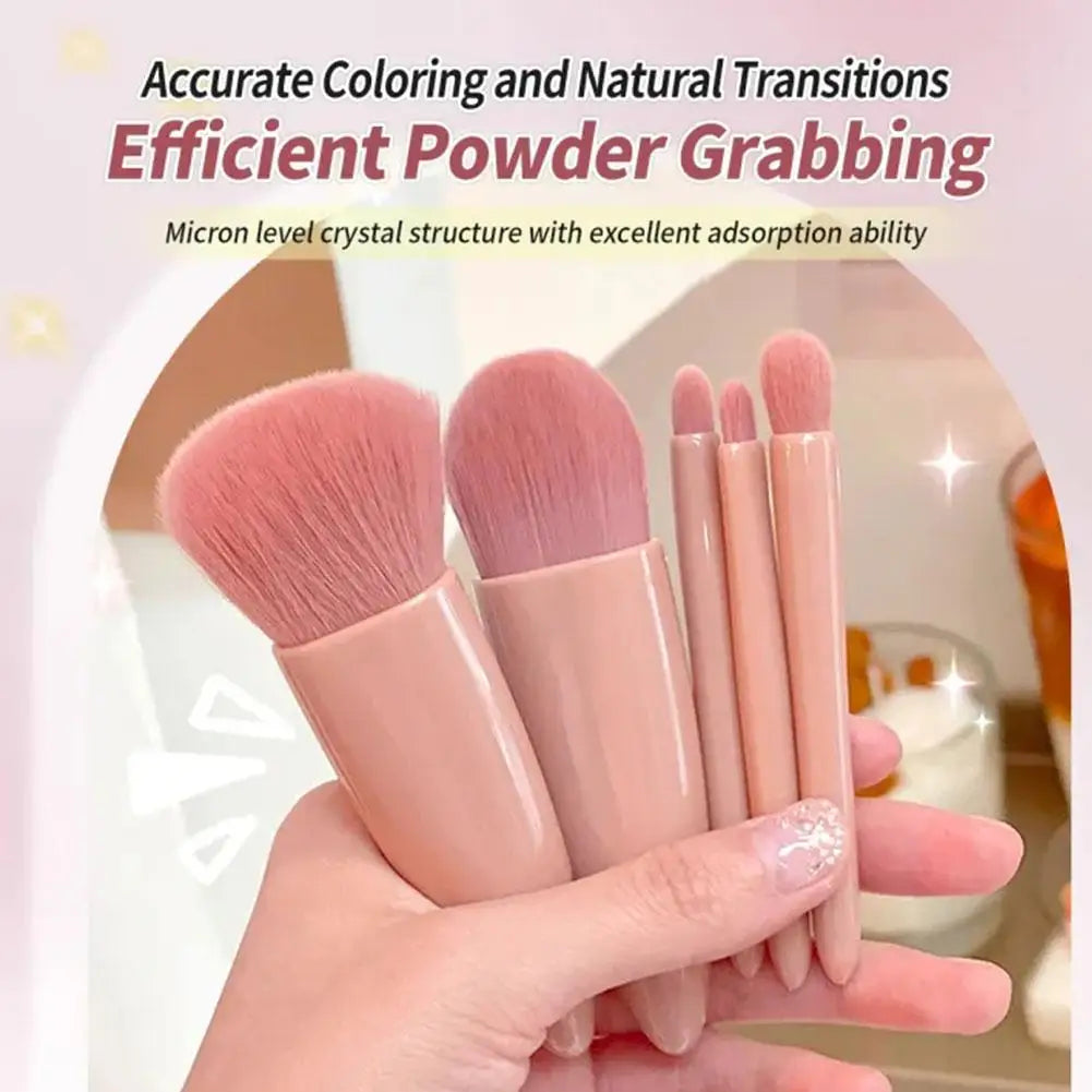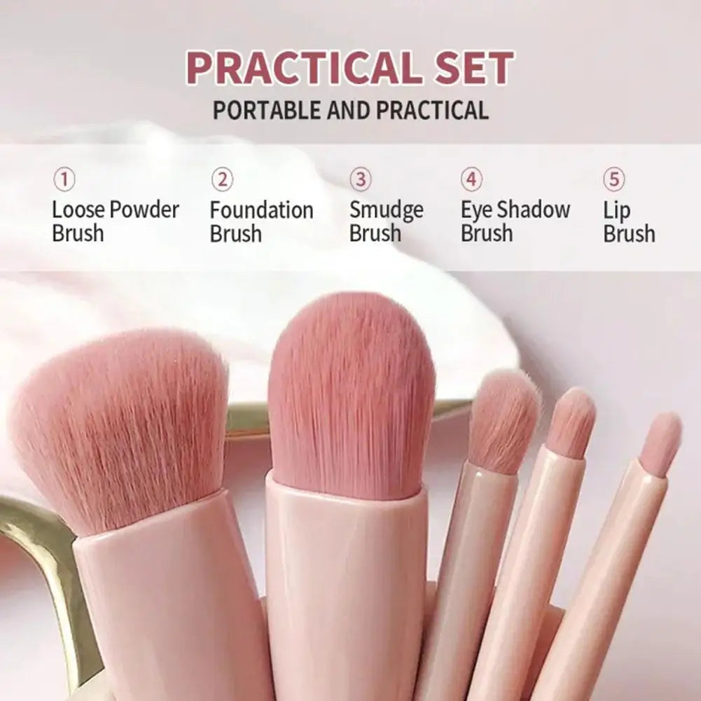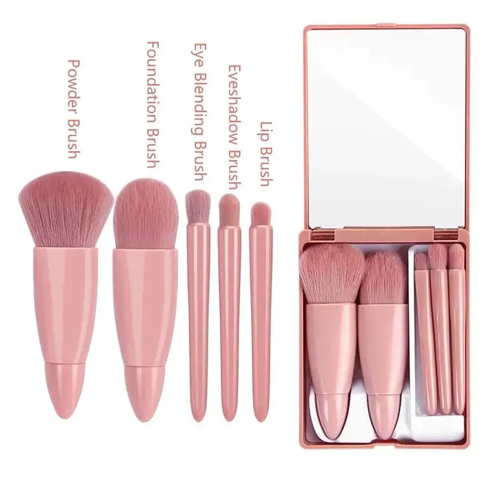 NEW 5Pcs Portable Makeup Brushes With Mirror Set Travel Mini Makeup Brush Small Complete Function Cosmetic Brushes Kit With Case